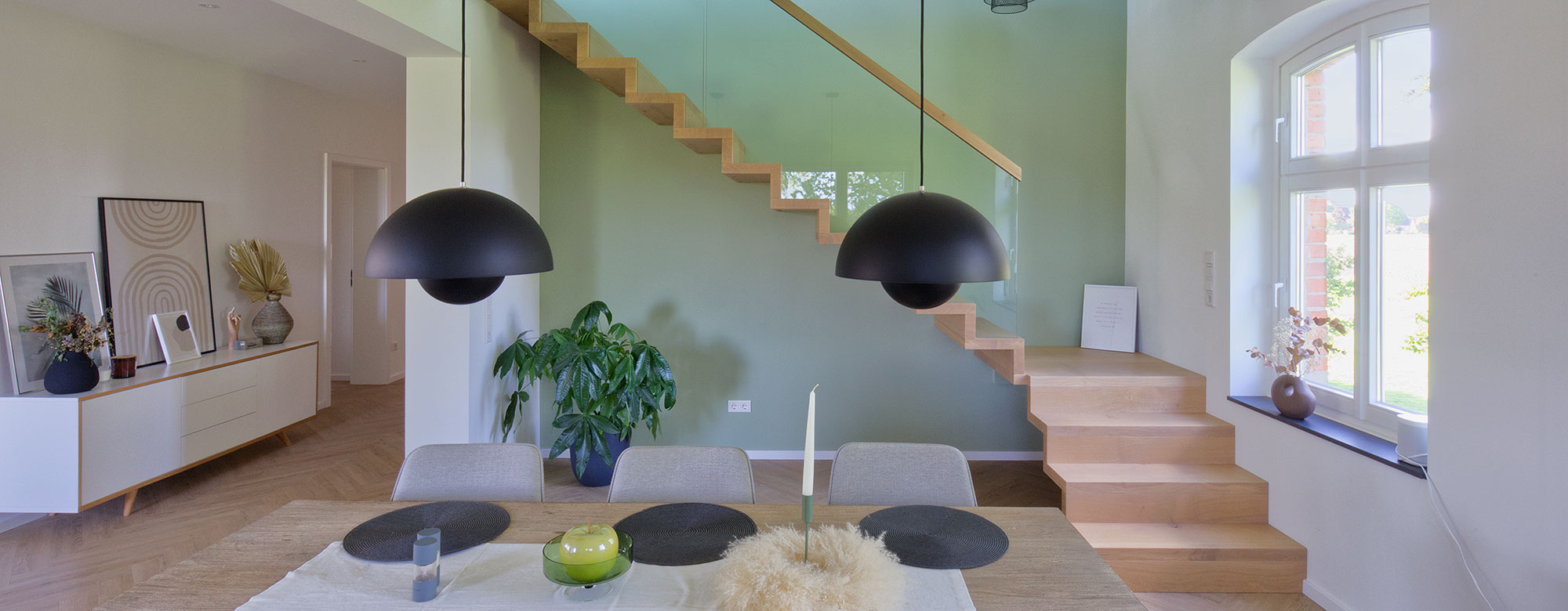 Wir bieten Ihnen eine ganzheitliche Beratung von der Haustür über Holzfußböden und Zimmertüren bis hin zu einer hochwertigen Holztreppe.